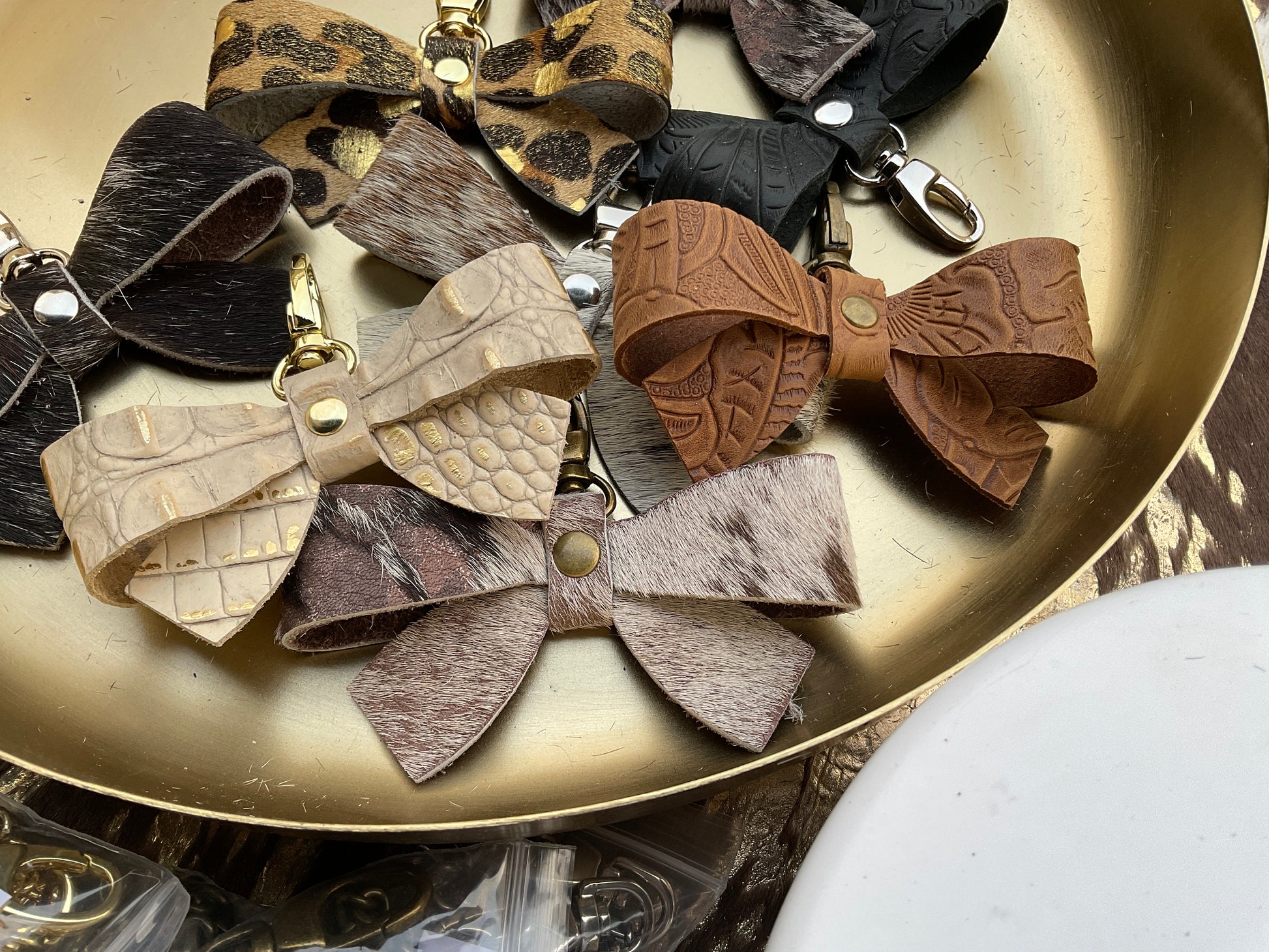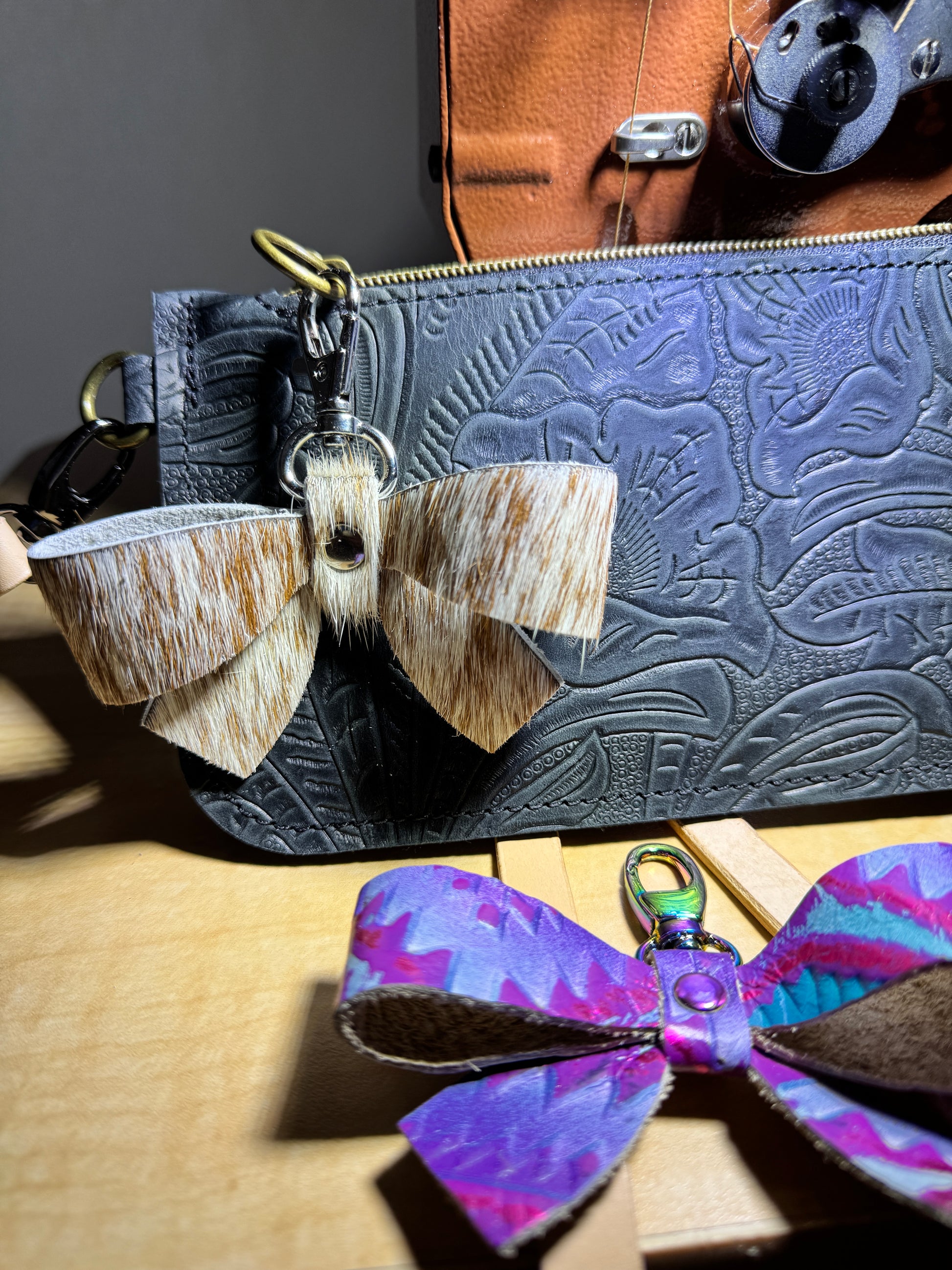 Add a touch of personality and timeless Western elegance to any bag with our custom handcrafted leather bow charm. Made by hand using premium leather and hair-on hide, each bow is thoughtfully designed to bring texture, character, and effortless style to your everyday carry.